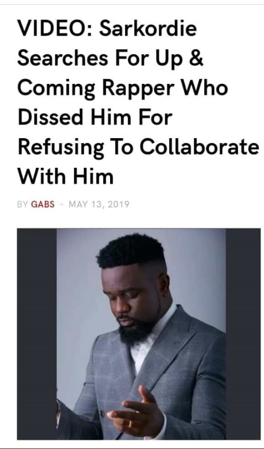 In the middle of may 2019 ,the hardworking upcoming artist Nbee Gh released a video which he dissed sarkodie for not responding to his request for features.
