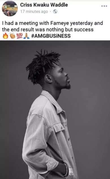 Ghanaian rapper and singer Fameye, born Famiyeh Bozah finally part ways with his former label, Ogidi Brown’s OGB Records for Criss Waddle’s AMG Business Records.