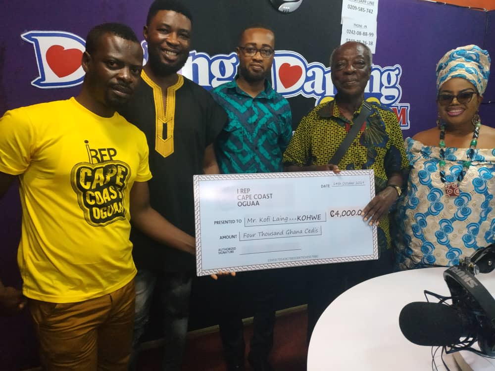 The amount was presented to Kohwe by Jimmy Kutin, Business Manager of Darling FM and Nana Akua Apeatsewah II, the Central Regional MUSIGA Chairperson.