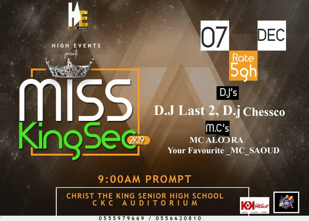 The Students of Christ The King Catholic Senior High School At Obuasi in Colaboration with High Events and High School Plug brings you their school beauty pageant that is the Miss KingSec 2019 on the 7th December 2019.
