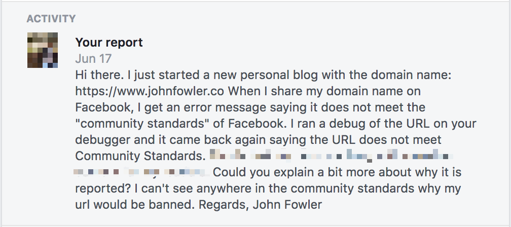 In this article I’ll explain how I found out my website was being blocked by Facebook and ultimately how I got my URL back again.