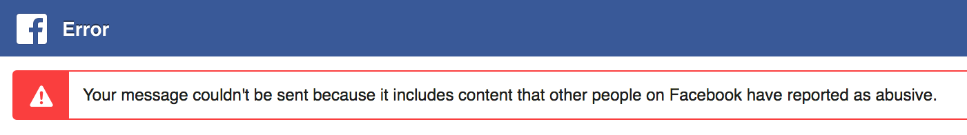 “Your message couldn’t be sent because it includes content that other people on Facebook have reported as abusive.”
