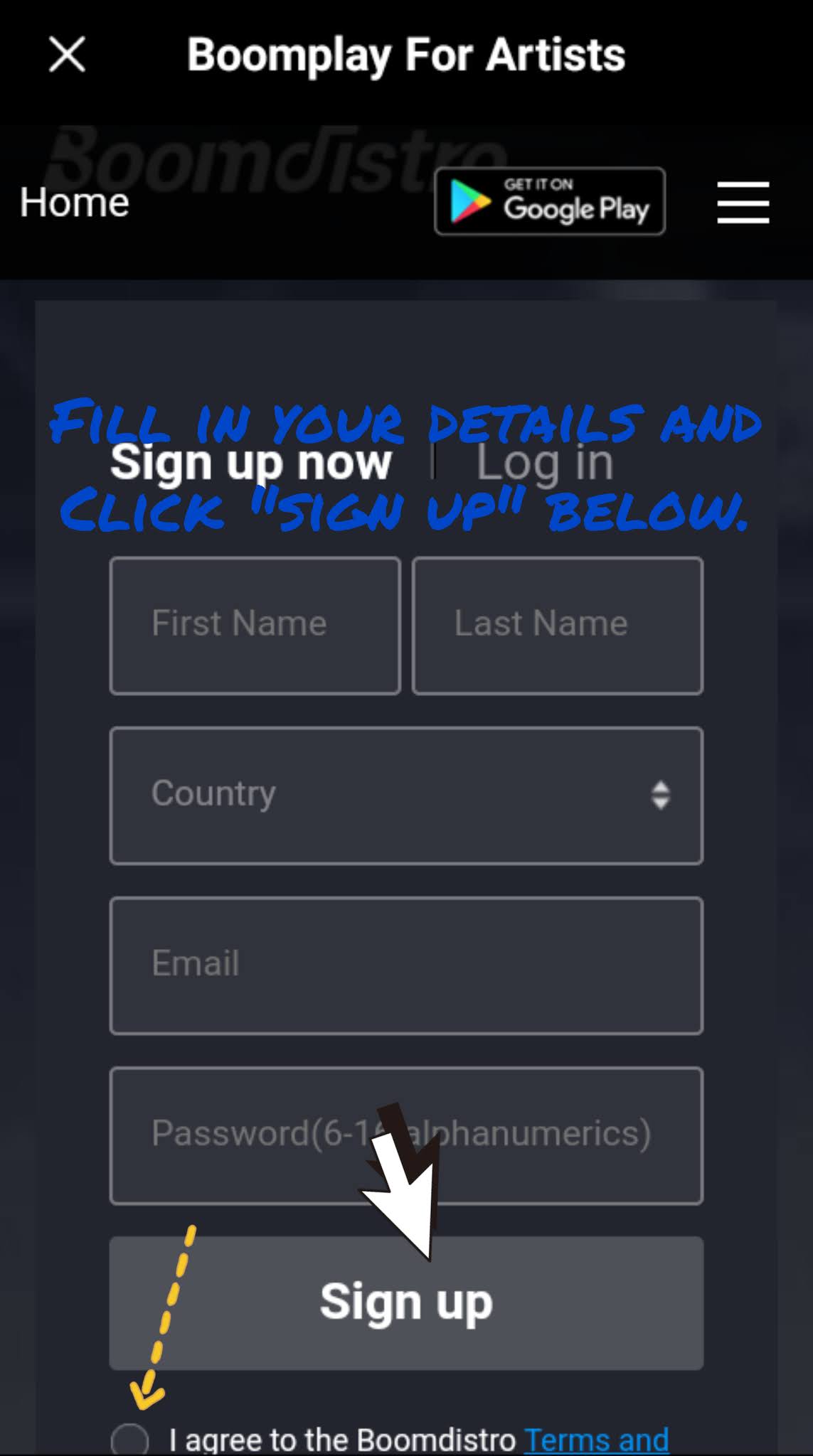 4. After step three, you will be redirected to Boomdistro’s website to sign up. All you have to do here is sign up and check your email for a confirmation message, click on the link contained in the message then you will be redirected to the boomdistro login page. If you aren’t redirected automatically, just click here to login then you input your login details as shown in the images below.