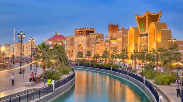 Global Village is one of Dubai’s most popular evening entertainment destinations. A combination of festival and theme park staged on the edges of Dubai, it opens yearly between November and April and takes visitors on a virtual world tour with replica international architecture, cultural zones, food pavilions, shows, rides, and markets.