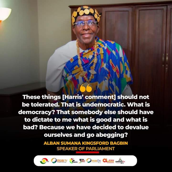 Again , Mr. Speaker added that, Harris comment is undemocratic and unprofessional. He asked “What is democracy? That somebody else should have to dictate to me what is good and what is bad? Because we’ve decided to devalue ourselves and go abegging for our indebted loans to be forgiven?”